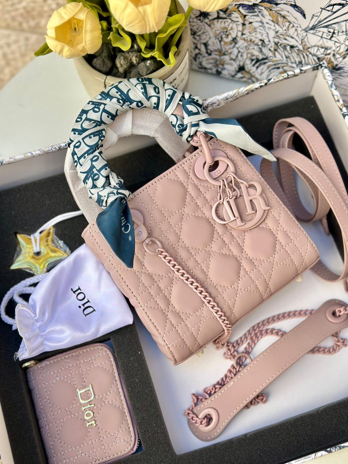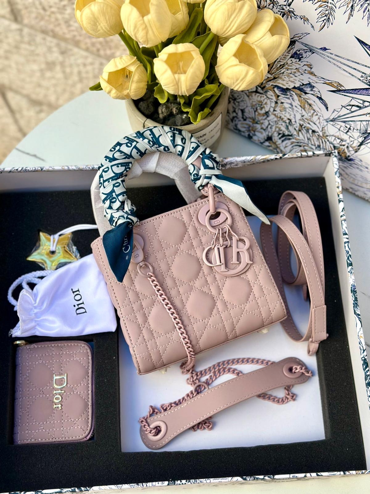 بكج DIOR زهري، حقيبة + محفظة + ماديليا النجمة + حزامين(حزام جلد+حزام سلسلة) + وشاح