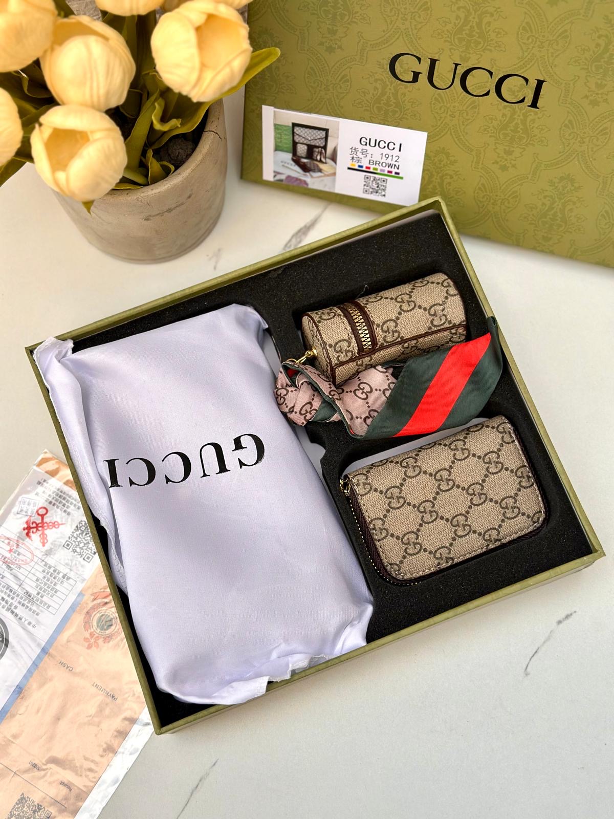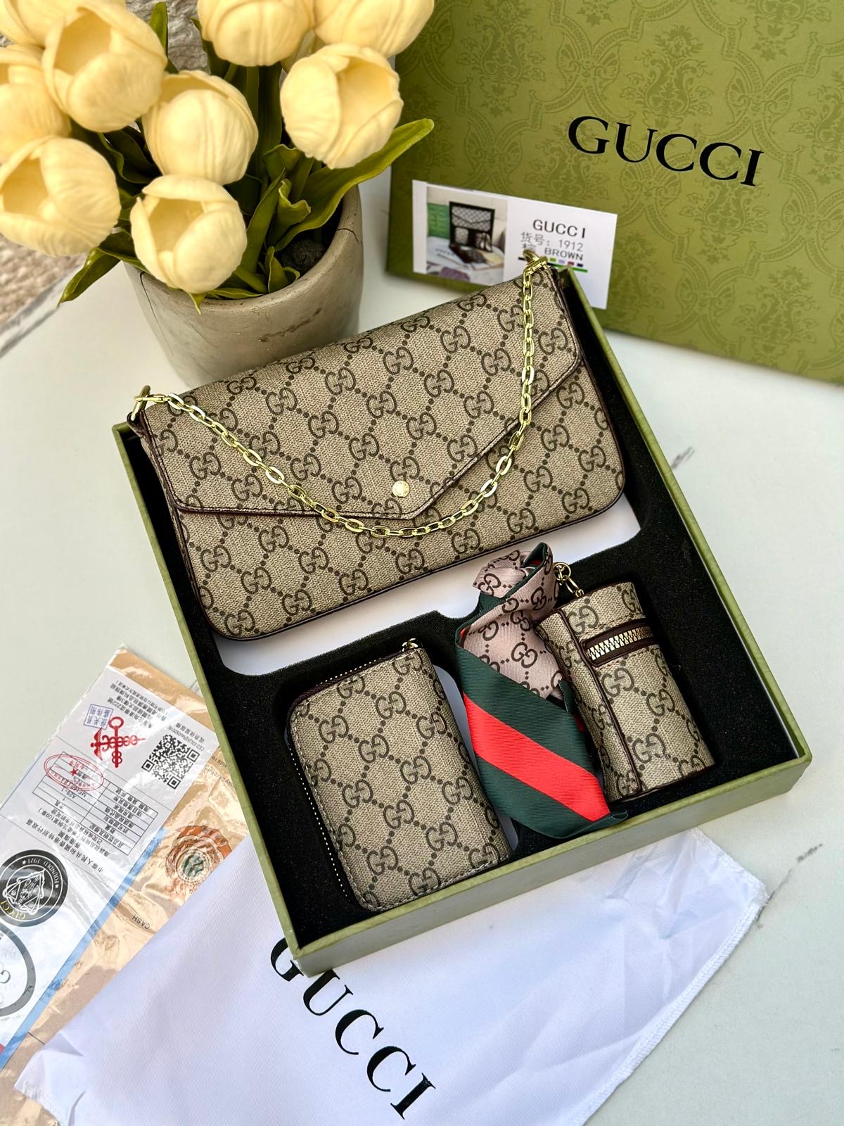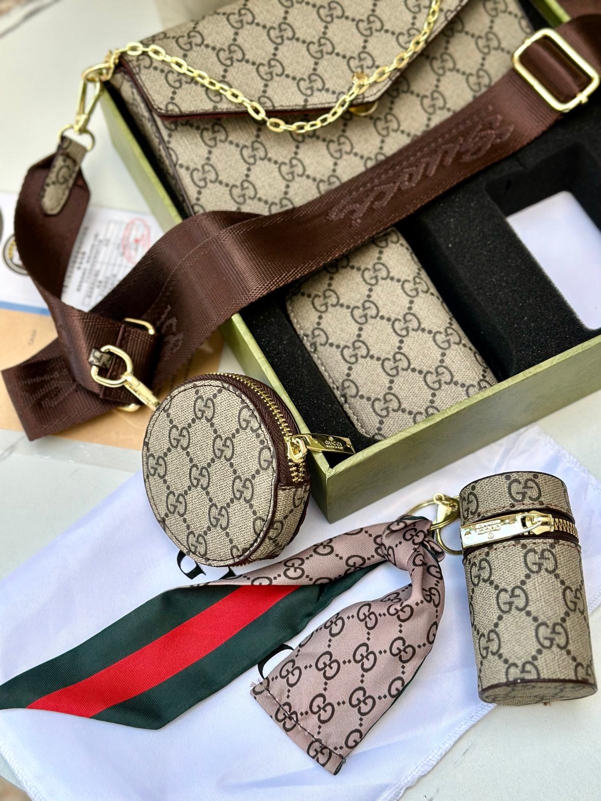 بكج gucci 💚 قاعدة 21سم، 4 قطع +حزام كروس
