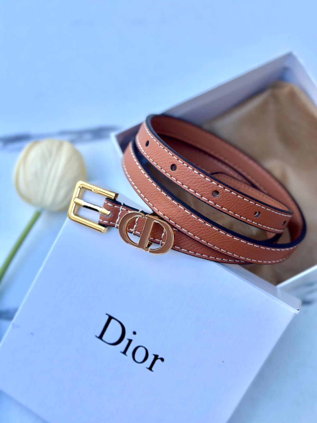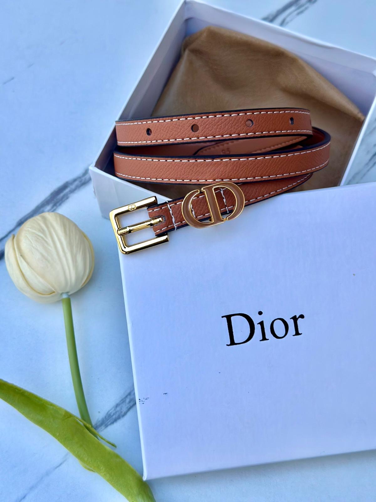 حزام Dior عسلي مع علبة مختوم