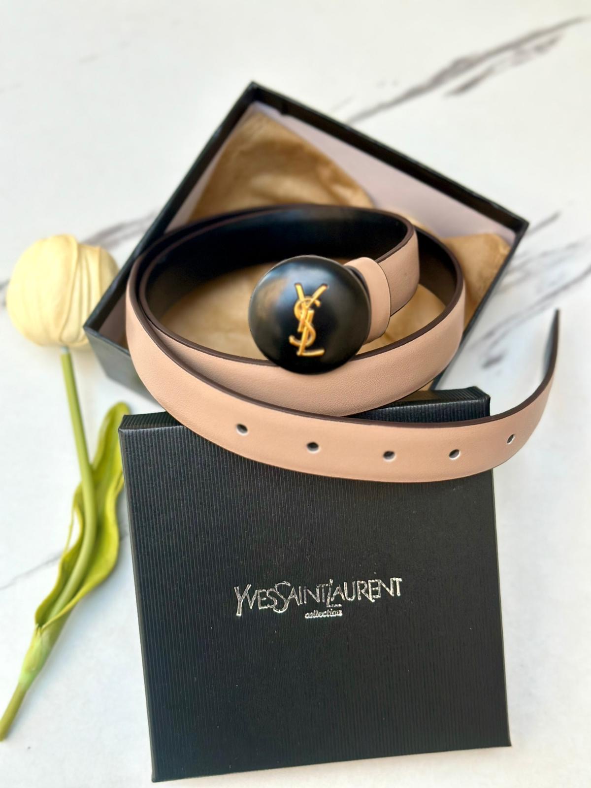 حزام ysl بيج (شعار دائري) مع علبة مختوم