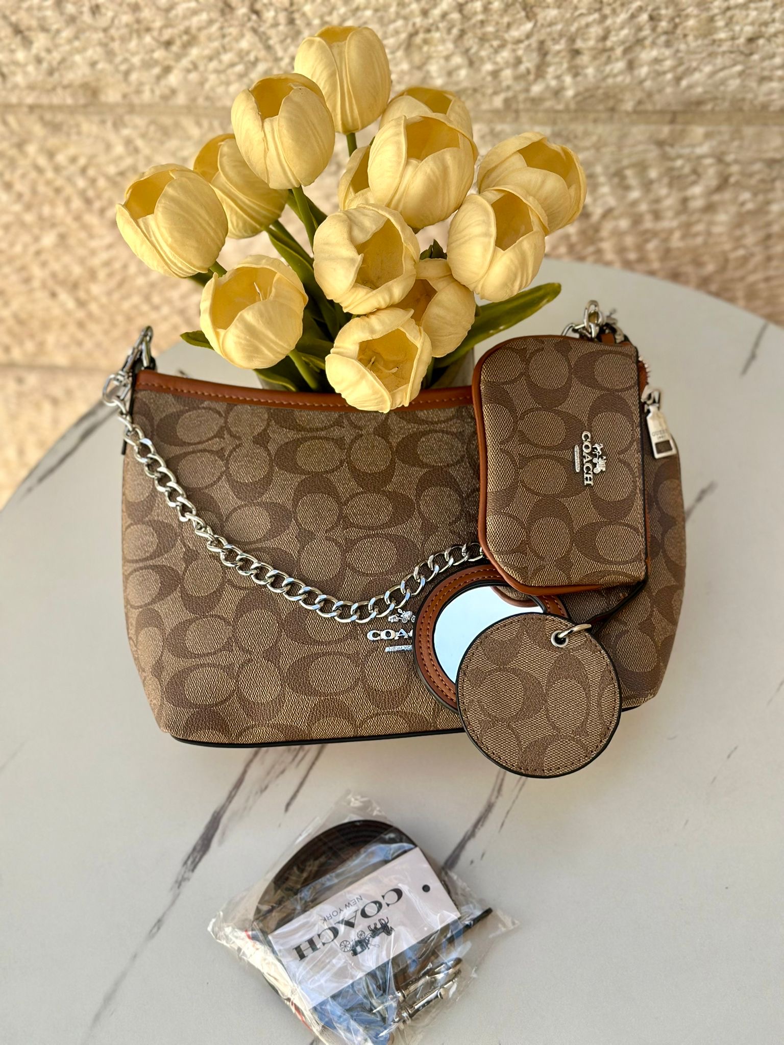 حفيبة كوتش كروسبودي مع جزدان + مرآة + حزام طويل