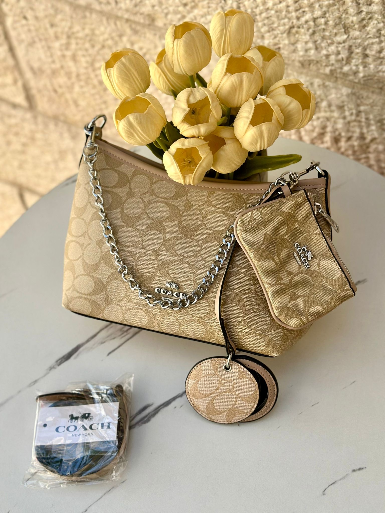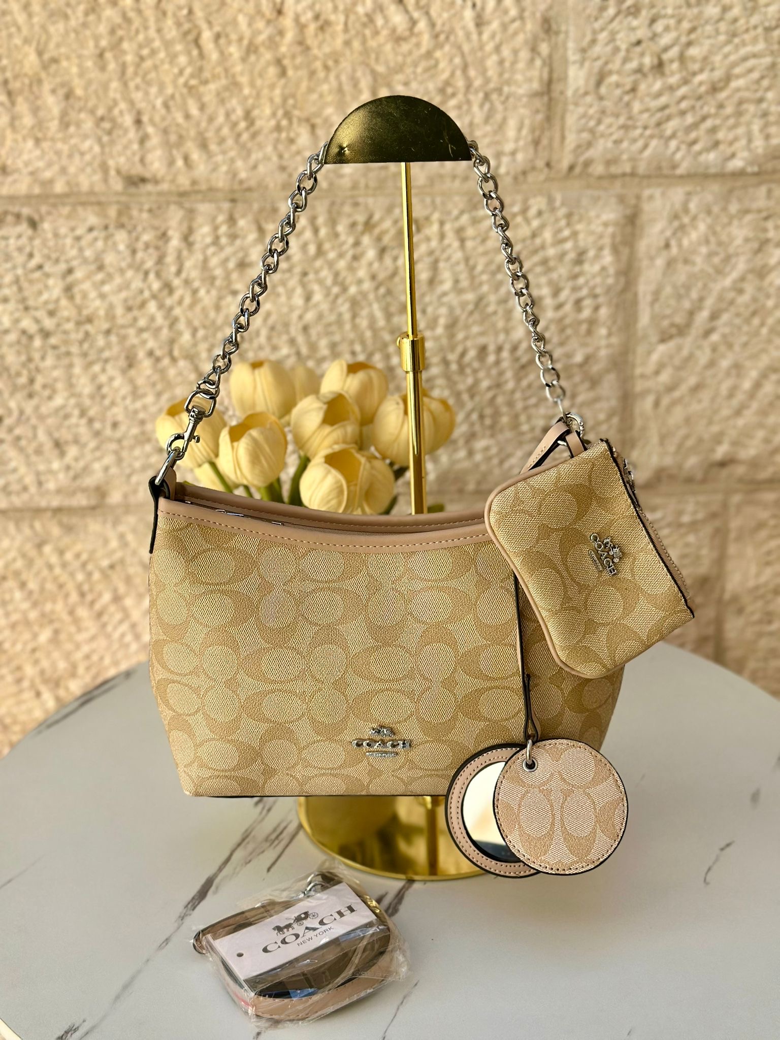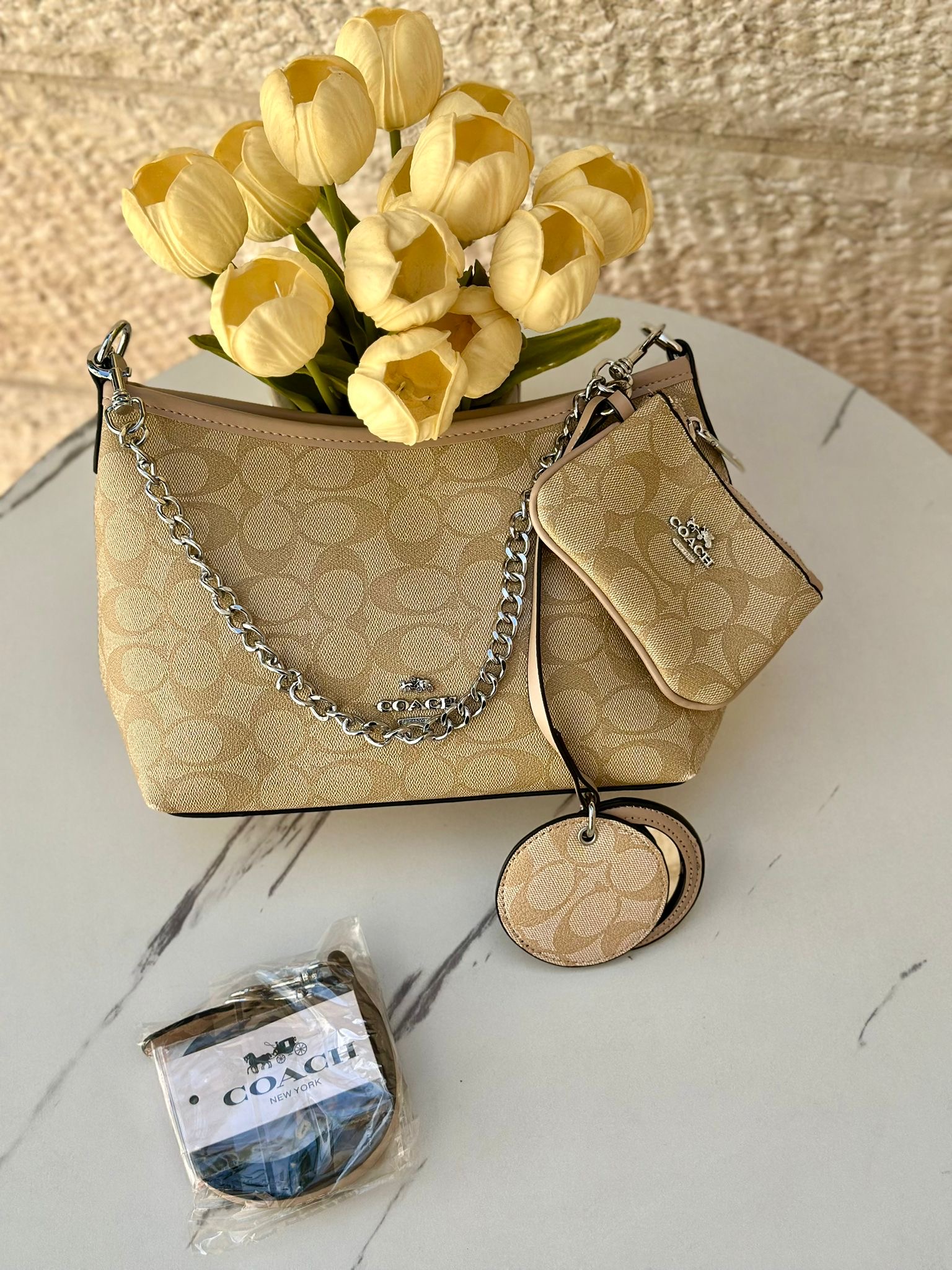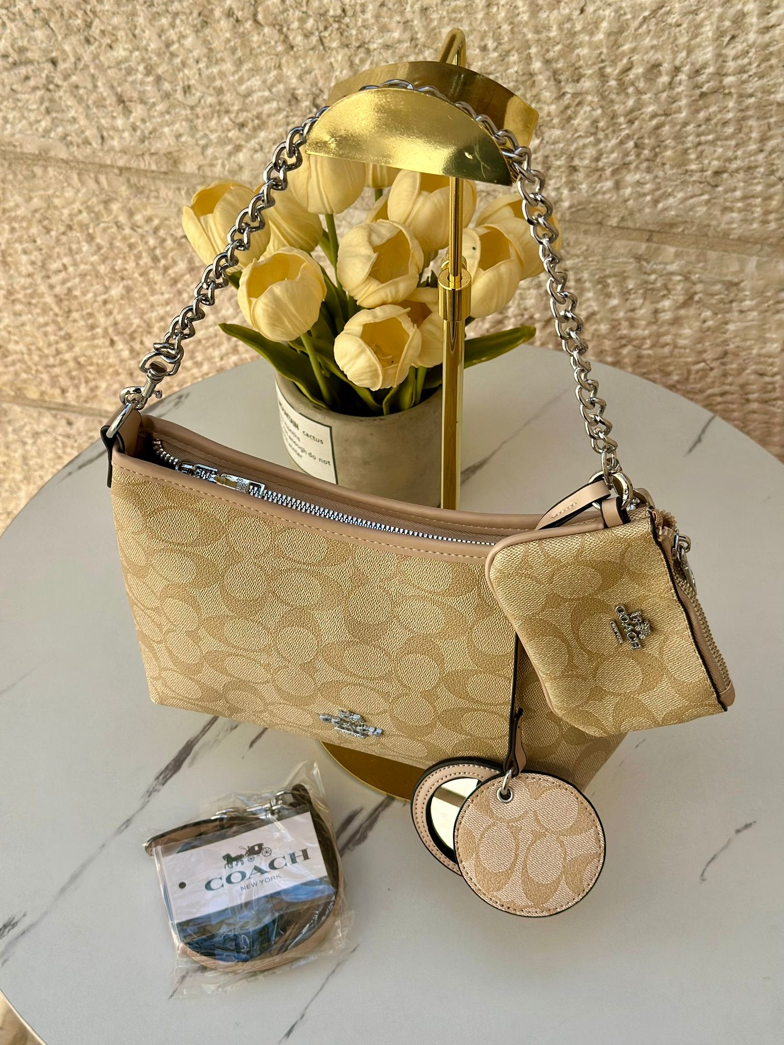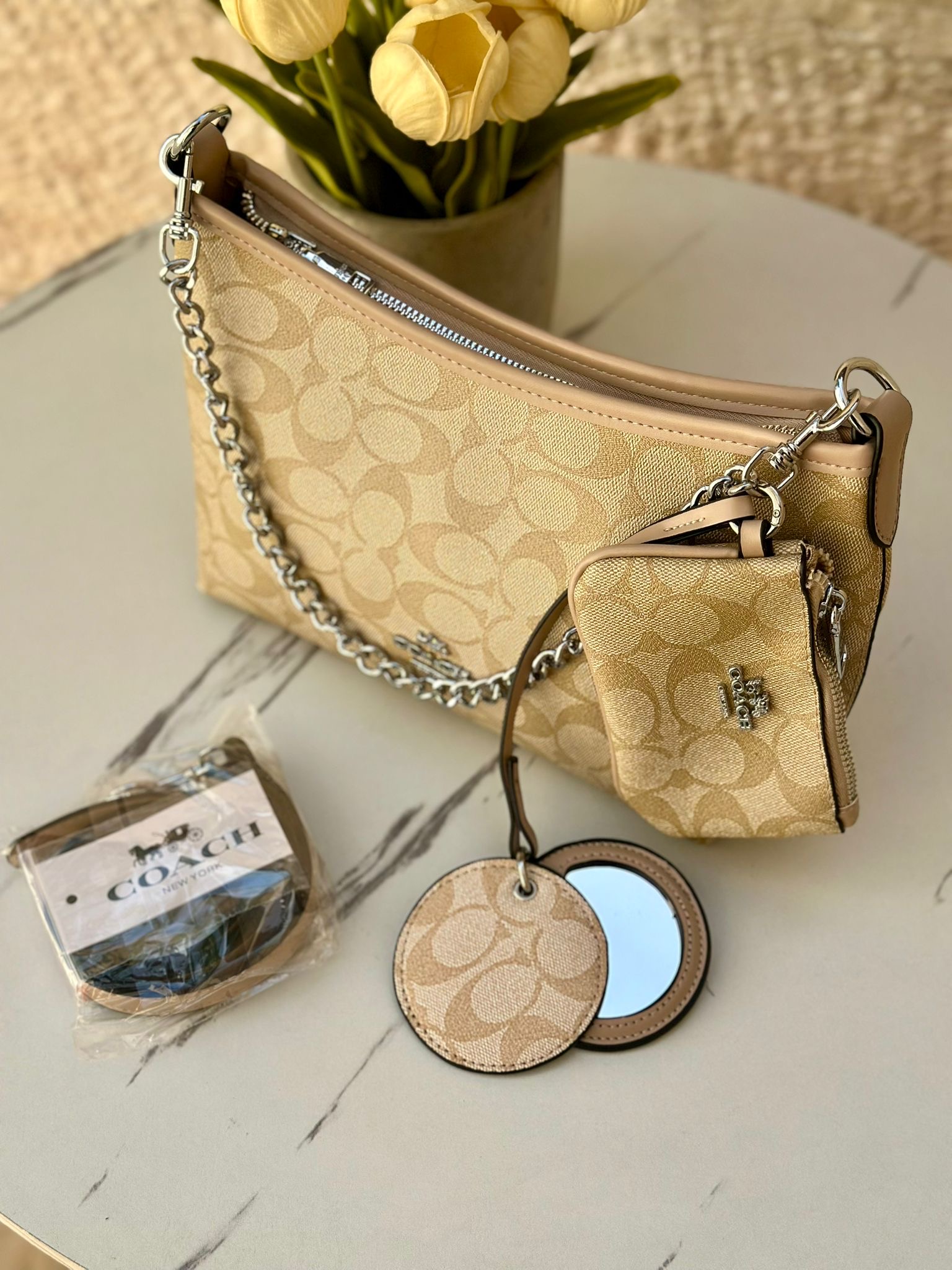 حفيبة كوتش كروسبودي مع جزدان + مرآة + حزام طويل