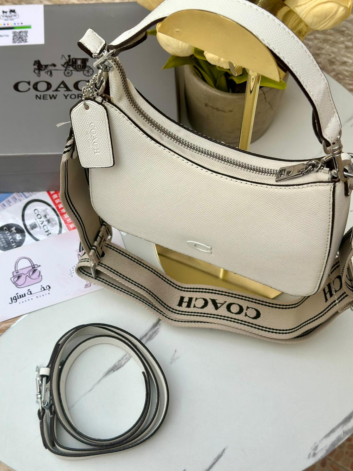 حقيبة كوتش كروس قاعدة 23سم🤍 مع 3 احزمة: -حزام يد صغير -حزام كروس جلد طويل -حزام كروس قماش طويل