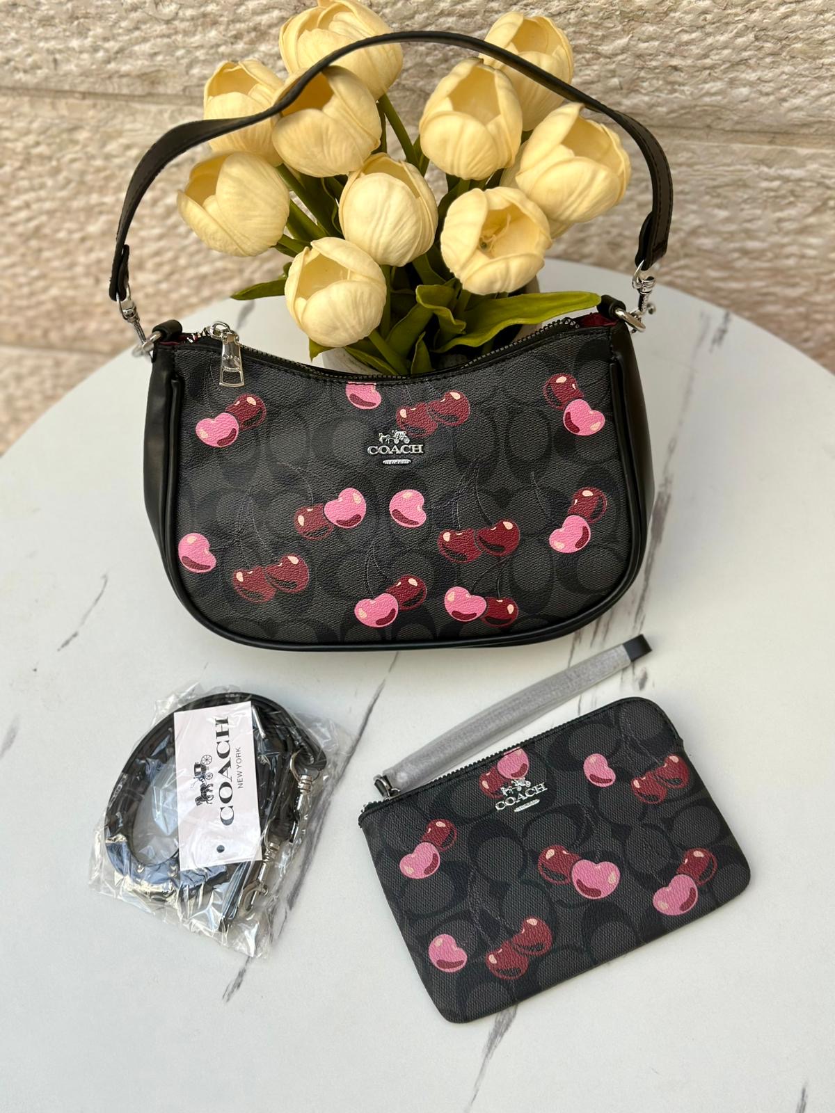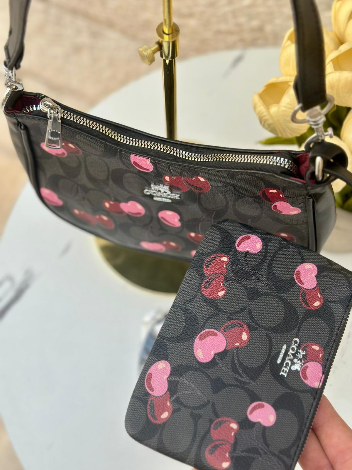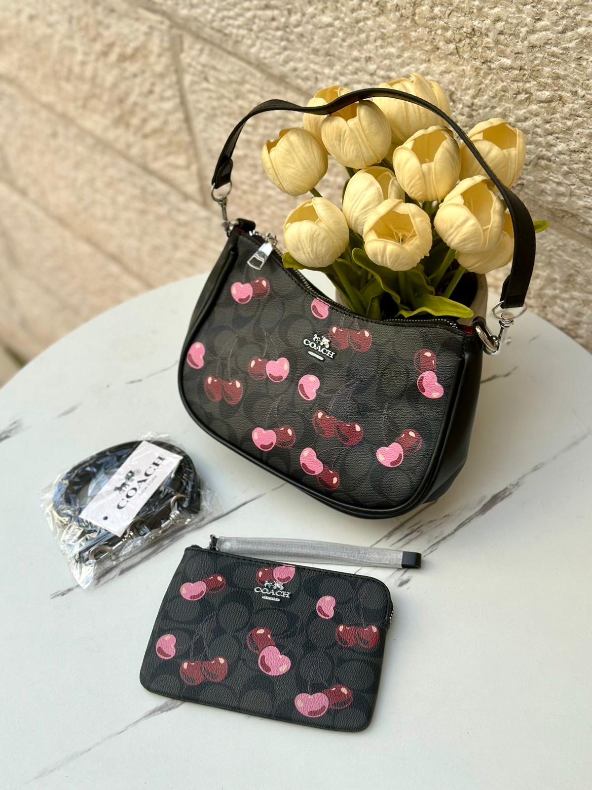 حقيبة كوتش مع محفظة 🍒🖤 قاعدة 22سم
