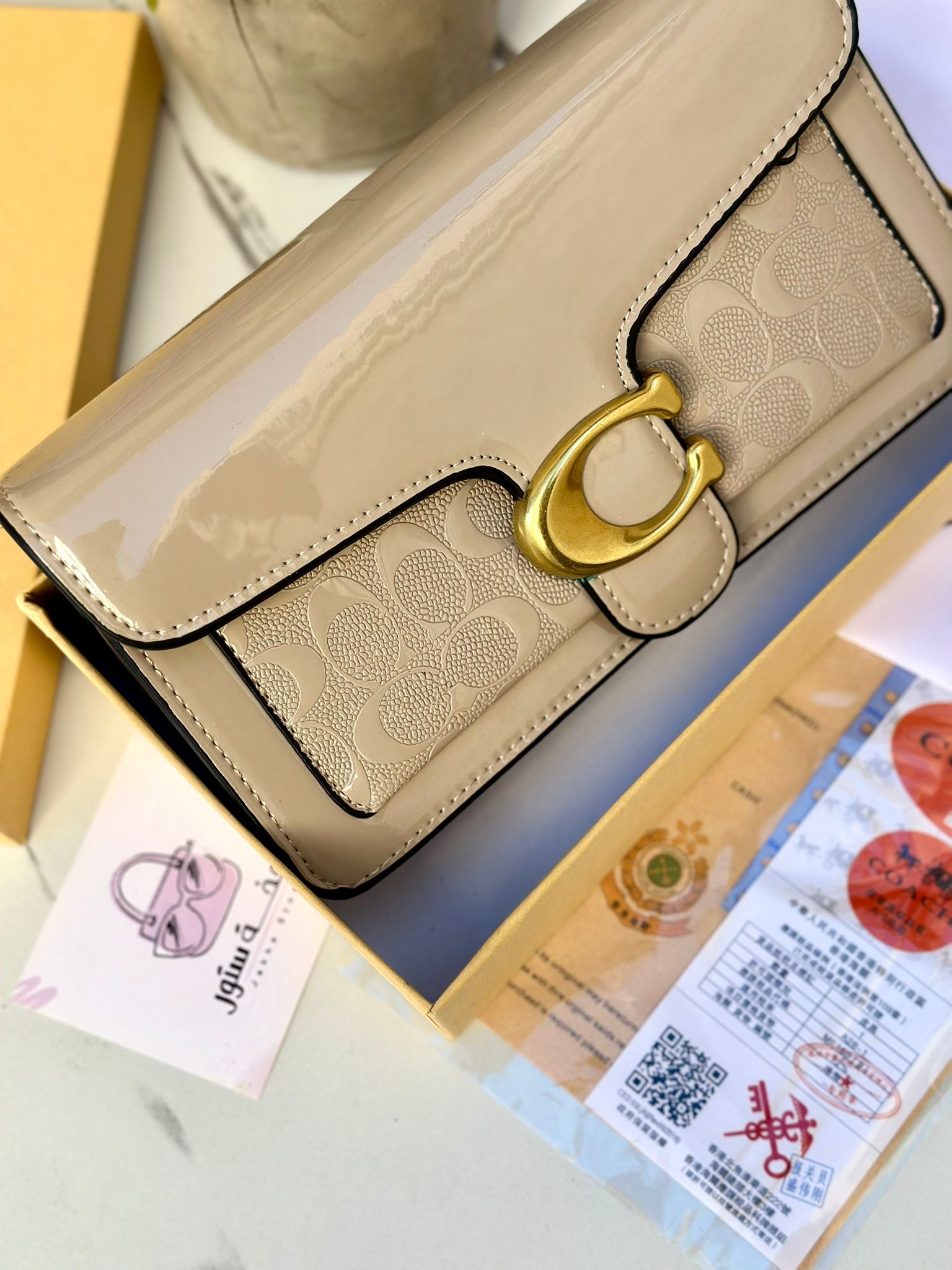 حقيبة كوتش فلاب اصدار 3d بيج لامع 27سم