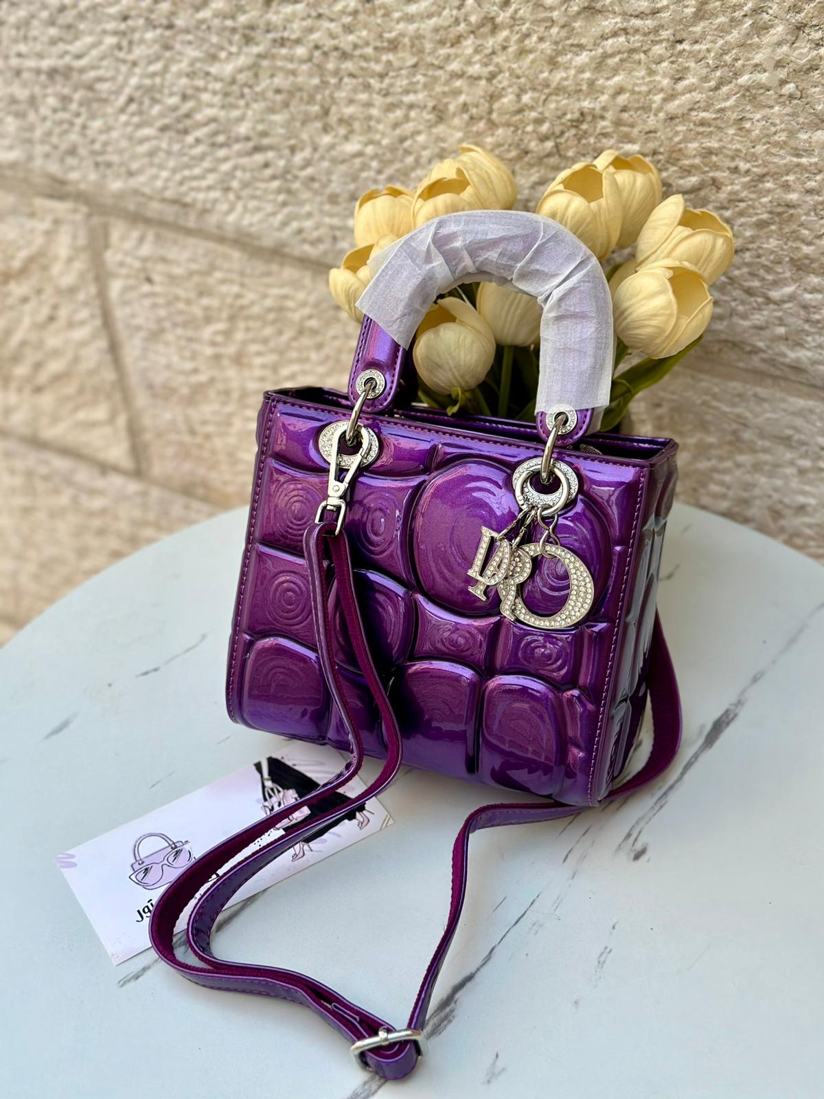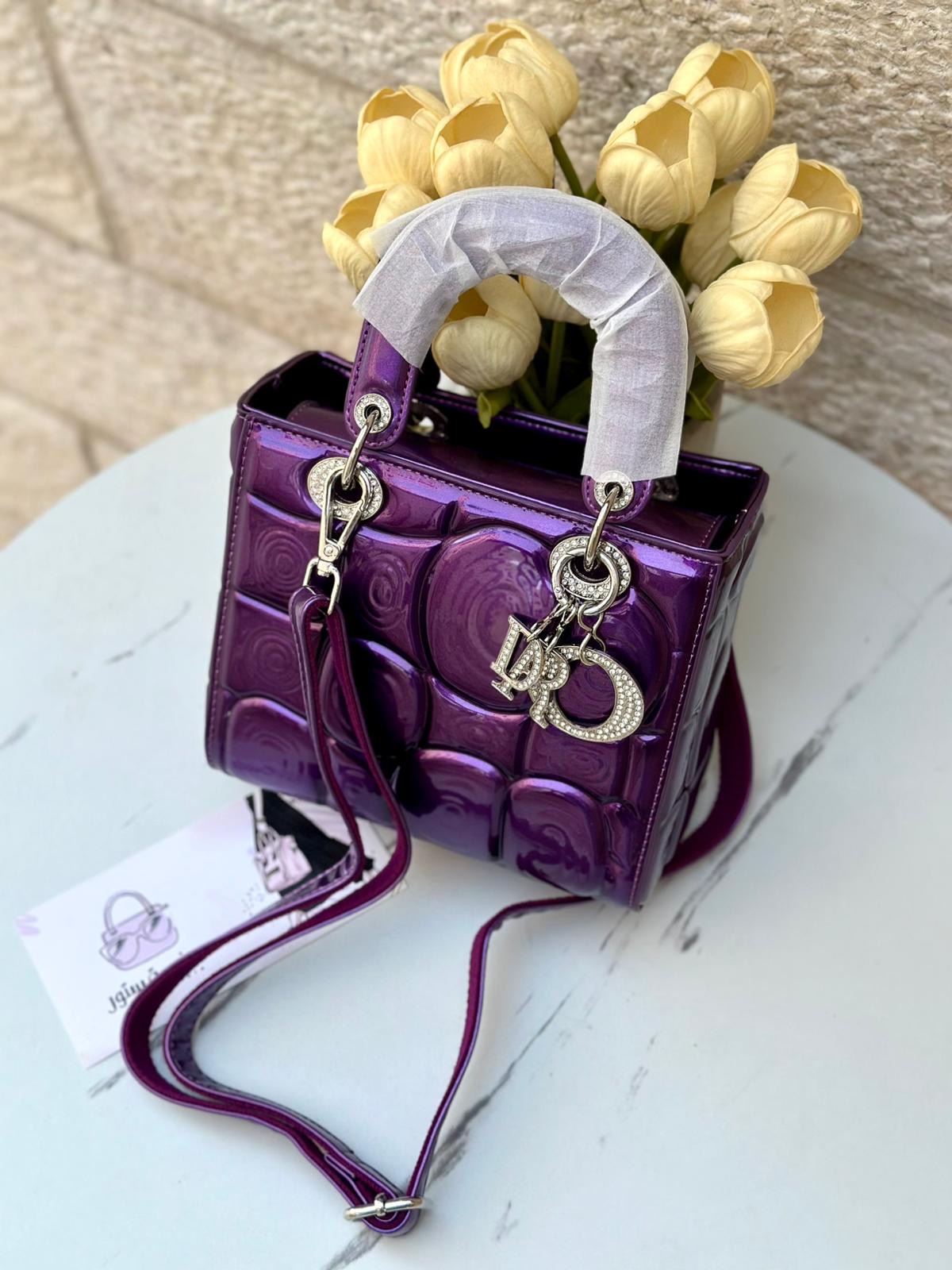-شنتة ليدي ديور جلد 3d لامع.