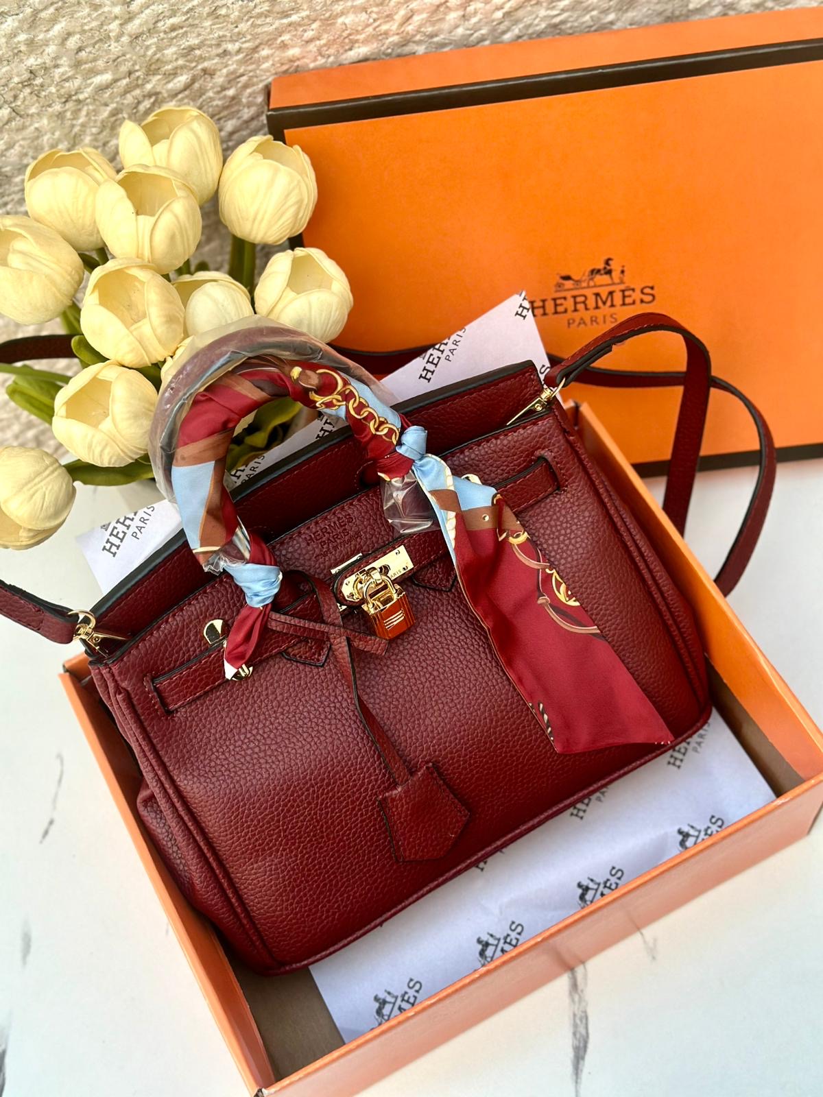 هيرمز بيركن خمري مع وشاح 🧣