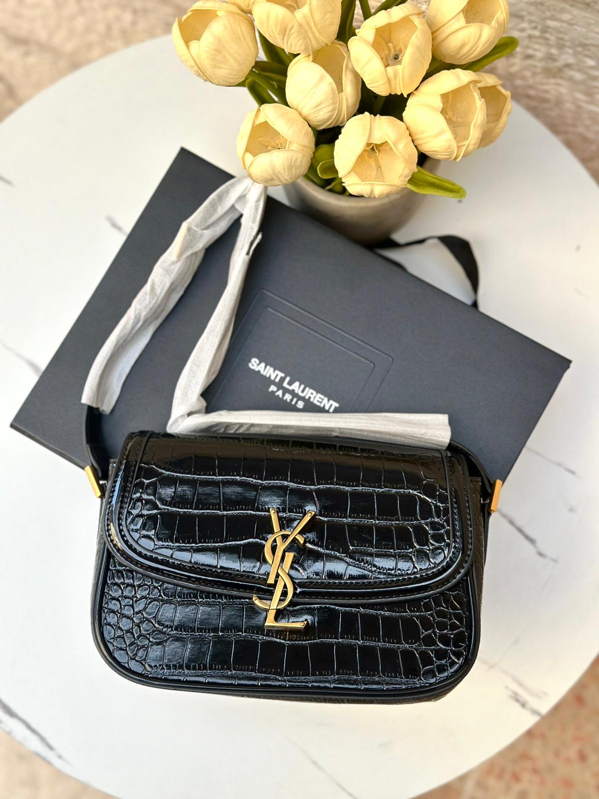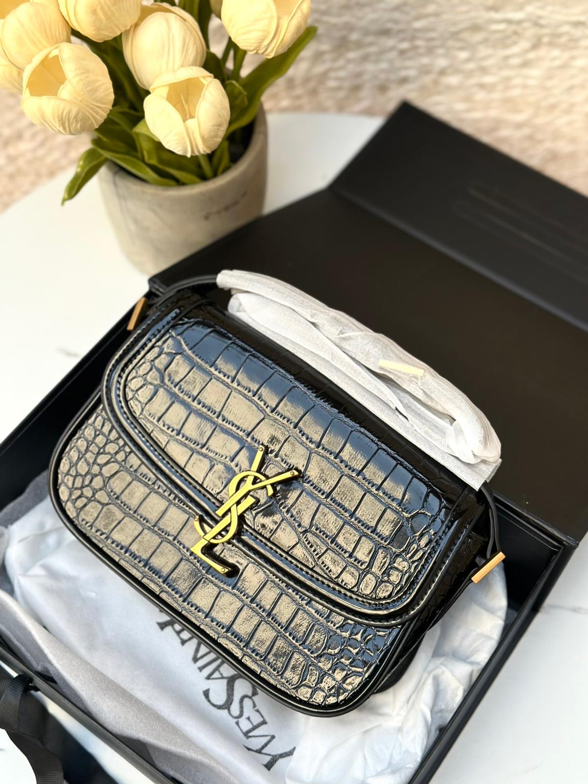 YSL سولفيرينو اسود جلد تمساح مع بوكس 🖤🎁