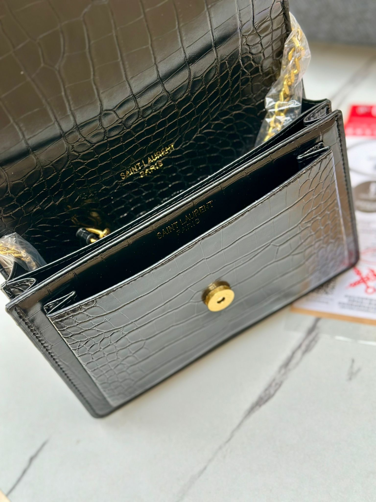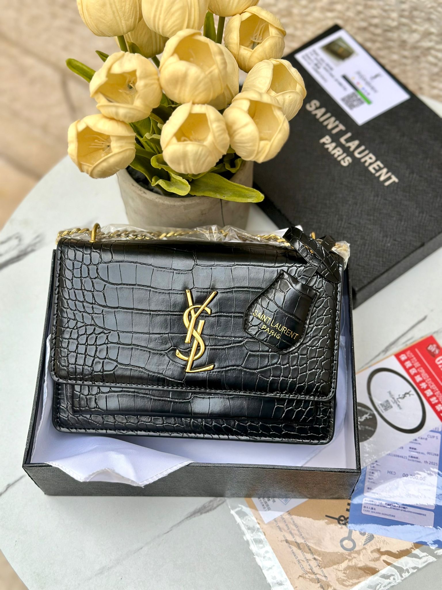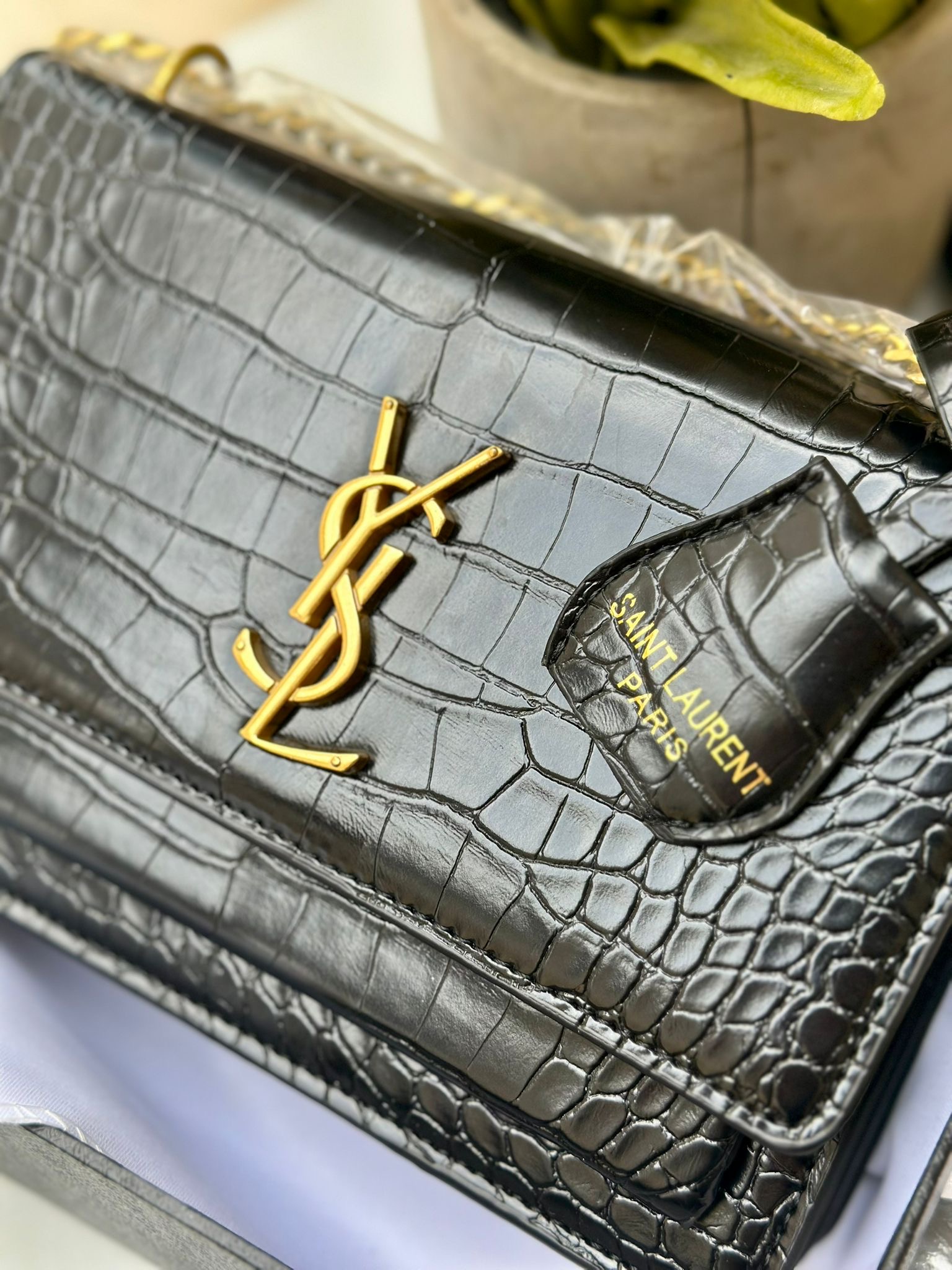 YSL كتف/كروس اسود جلد تمساح مع علبة 🖤🎁